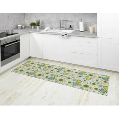 Mit der praktischen Weichschaummatte von Wenko kommt ein echtes Allround-Talent zu Ihnen nach Hause. Die clevere Bodenmatte aus pflegeleichtem Kunststoff überzeugt mit ihrer Multifunktionalität und ansprechendem Design im charmanten Retro-Look. Ideal eignet sich die Matte als Bad- und Duschvorleger im Badezimmer. Sie ist rutschfest und sorgt so für die nötige Sicherheit, überall da wo es nass werden kann. Auch in der Küche macht sie als Küchenläufer eine gute Figur. Im Außenbereich auf Balkon und Terrasse wird der Teppich zu einem dekorativen und widerstandsfähigem Hingucker. Auch im Fitness- und Saunabereich ist es der perfekte Bodenbelag. Durch den Weichschaum erhalten Sie einen angenehmen Trittkomfort. Dabei ist die Bodenmatte sehr hygienisch, atmungsaktiv und für Fußbodenheizung geeignet. Dank der flexiblen Handhabung kann die Matte bequem auf die gewünschte Größe mit der Schere zugeschnitten werden. Der komfortable Teppich ist schmutzabweisend und bei Bedarf kinderleicht in der Waschmaschine bis 40 Grad schonend zu reinigen. Maße (B x T): 65 x 200 cm