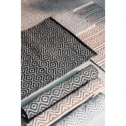 Die Wenko Badematte Turpan aus recycelten PET Flaschen 50 cm x 80 cm ist ein Produkt mit Nachhaltigkeit und absolutem Mehrwert! Eine gemütliche Inneneinrichtung und das umweltbewusst? Mit dem im Boho-Stil gehaltenen Badezimmerteppich Turpan von Wenko, hergestellt aus Recyclingmaterial in den Farben Dunkelgrau und Weiß, vereinen Sie beide Ansprüche an Ihr Interieur. Der harmonische Badvorleger ist so viel mehr als nur ein Teppich fürs Bad. Die Upcycling Fußmatte ist stilvoll und nachhaltig zugleich. Das harmonische Wechselspiel von größeren und kleineren Rauten bildet ein in Dunkelgrau und Weiß gehaltenes, gleichbleibendes geometrisches Muster. Der charmante Boho-Teppich lädt regelrecht dazu ein, Ihre Füße nach einem entspannten Bad in Empfang zu nehmen. Der Vorleger überzeugt in komfortabler Größe von 50 cm x 80 cm. So passt der nachhaltige Artikel ideal in Ihr Gäste-WC und sorgt auch vor dem Waschbecken für einen sicheren Stand. Die Rückseite des Teppichs im Ethno-Stil ist rutschhemmend, so liegt die Matte auch auf glatten Fliesen stets am richtigen Platz. Die Matte fürs Badezimmer vermittelt ein angenehmes Laufgefühl und hält gleichzeitig die Bodenkälte ab. Zudem garantiert das schöne Textil eine hohe Feuchtigkeitsaufnahme und ist dabei schnelltrocknend. Bei Bedarf können Sie den Badvorleger bei 40 °C Schonwaschgang reinigen. Für die Herstellung des Duschvorlegers wurden ca. 18 – 20 recycelte PET-Flaschen verwendet. Dabei sehen Sie dem Bad-Accessoire die Plastikflasche kein bisschen an: Die Gewebestruktur der im Retro-Look gehaltenen Duschmatte verleiht Ihrer Wohlfühloase eine noch behaglichere Atmosphäre! Mit dem eleganten Teppich Turpan von Wenko unterstützen Sie gleichzeitig die Natur sowie Ihr Zuhause.