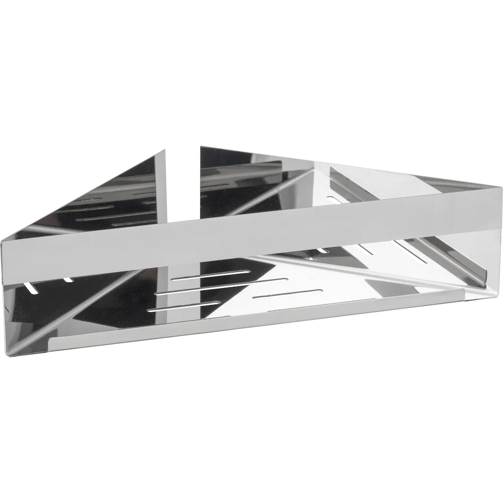 Das schicke Badregal eignet sich ideal zur dekorativen Aufbewahrung von Pflegeprodukten in Flaschen und Tuben. Shampoos und Duschgele sind hier sicher aufgehoben und im Duschbereich schnell griffbereit. Durch die Schlitze im Boden der Ablage kann sich hier kein Wasser ansammeln, sondern sauber abfließen. Das kleine Regal schafft zusätzlichen Stauraum in ungenutzten Ecken und ist daher besonders platzsparend in Dusche oder Bad. Insgesamt misst die Eckablage (B x H x T): 36 x 8 x 17 cm.