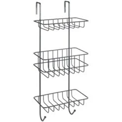 Mit seinen drei eckigen Körben bietet das Regal flexible Ablagemöglichkeiten für Reinigungs- und Pflegeutensilien in der Dusche. Die großzügigen Körbe im offenen Drahtkorb Design verfügen über drei unterschiedlichen Höhen, sodass für jede Flasche der richtige Platz verfügbar ist. Das Wasser kann bequem abfließen. Der untere Korb verfügt außerdem über zwei Haken zum Aufhängen von Schwämmen, Bürsten oder Waschlappen.