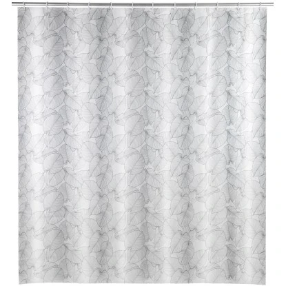 Der Wenko Duschvorhang Samoa 180 cm x 200 cm Weiß besticht mit einem kleinblättrigen Muster in stilsicherem Schwarz-Weiß. Unaufdringlich und doch elegant fügt sich der pflegeleichte Duschvorhang in Ihr Badezimmer-Interior ein. Wenko kombiniert mit diesem Vorhang ausgefallenes Design und komfortable Funktionalität. So ist der praktische Duschvorhang aus umweltfreundlichem, recyclingfähigem Kunststoff-Film (PEVA) hergestellt und absolut wasserdicht. Durch die Oberflächen-Veredelung erhält das Material einen wasserabweisenden Effekt, der zusätzlich für ein einfaches Abperlen von Feuchtigkeit und Wasserspritzer sorgt. Die Feuchtigkeit sammelt sich nicht mehr in den Vorhangfalten. Die Duschvorhänge sind deswegen besonders lange haltbar und trocknen nachweislich schneller. Im Lieferumfang enthalten sind 12 weiße Duschvorhangringe aus Kunststoff enthalten. Mit einer Breite von 180 cm eignet sich der Vorhang sowohl für Dusche als auch Badewanne.