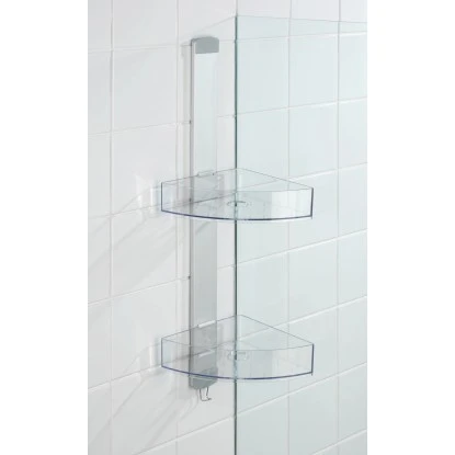 Mit zwei komfortablen Ablage bietet er viel Platz für all Ihre Duschutensilien und hält Duschgel, Shampoo, Seife oder Schwämme stets griffbereit. Die seitlich verschiebbaren Ablagen verfügen über jeweils ein Loch für kopfüber aufbewahrte Shampoo-Flaschen. Zugleich dienen die Löcher als Wasserablauf. An dem integrierten Edelstahl-Haken können zudem platzsparend Waschhandschuhe, Duschschwämme oder Handbürsten aufgehängt werden. Für die Montage sind Adapter für Türfalzen von 11 mm sowie Schrauben und Dübeln für die Wandmontage im Lieferumfang enthalten.