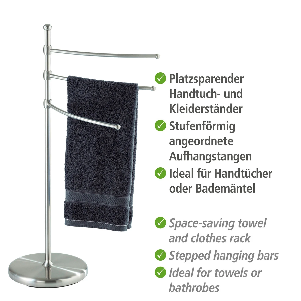 Drei übereinanderliegende, höhenverstellbare, leicht gebogene Arme zum Aufhängen von Handtüchern und Kleidungsstücken