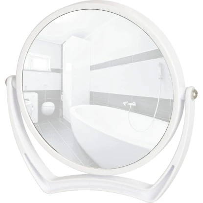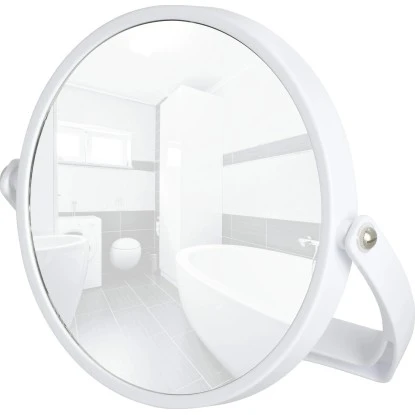 Der Wenko Spiegel Noale in Weiß bietet neben der 100 % Spiegelfläche eine 5-fach Vergrößerung für den kosmetischen Einsatz. Die Spiegelfläche hat einen Durchmesser von 16,5 cm und lässt sich je nach Bedarf neigen oder umklappen.