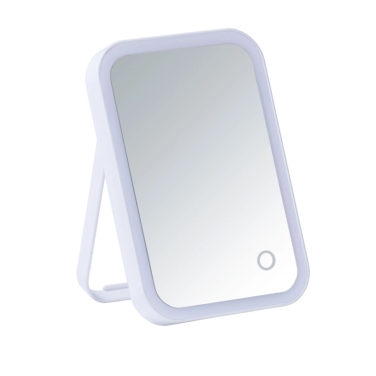 Kosmetikspiegel sind ein Must-Have für jedes gut ausgestattete Badezimmer – WENKO sorgt für den richtigen Durchblick mit den zeitlos schönen Wand- und Standspiegeln, perfekt fürs Stylen, Schminken und Rasieren.Der Kosmetik-Standspiegel Arizona mit LED-Beleuchtung fügt sich mit seinem zeitlosen Design dezent in die Einrichtung ein.Beleuchtete Spiegel ermöglichen selbst in dunklen Räumen einen optimalen Blick auf kleine Details in Ihrem Gesicht. Zudem eignen Sie sich zum Beispiel bestens zum Augenbrauen zupfen oder anderen Pflegeroutinen, bei denen Sie eine perfekte Ausleuchtung gewisser Gesichtspartien benötigen.Durch die innovative Touch-Funktion kann das Licht des Spiegels durch einfaches Berühren an- bzw. ausgeschaltet werden. Ein besonderes Extra ist der integrierte Dimmer für die LED-Beleuchtung für einfaches Schalten in bedarfsgerechte Helligkeitsstufen.Mit seinen integrierten LEDs hat der Schminkspiegel eine extra hohe Leuchtkraft. Die Lebensdauer der integrierten LED-Technik (batteriebetrieben) ist extrem hoch. Die Batterien (4x Micro AAA, 1,5V) sind nicht im Lieferumfang enthalten.Erleichtert wird die Anwendung durch den stufenlos einstellbaren Neigungswinkel bei einer Spiegelfläche von 12 x 15,5 cm.Der Leuchtspiegel ist aus stabilem Kunststoff gefertigt und in klassisch-schönem Weiß gehalten. Auf seinem Standbügel steht er stets sicher, kann aber auch problemlos zusammengeklappt und mit auf Reisen genommen werden.