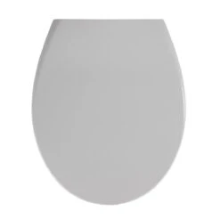 Hochwertiger WC-Sitz mit ovaler Deckelform aus antibakteriellem, hochwertigem Duroplast in der angesagten Farbe Beton-Grau