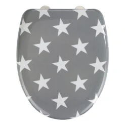 Aufwendig verarbeiteter Toiletten-Sitz in Grau mit ovaler Deckelform aus antibakteriellem, hochwertigem Duroplast mit angesagtem Sternen-Motiv