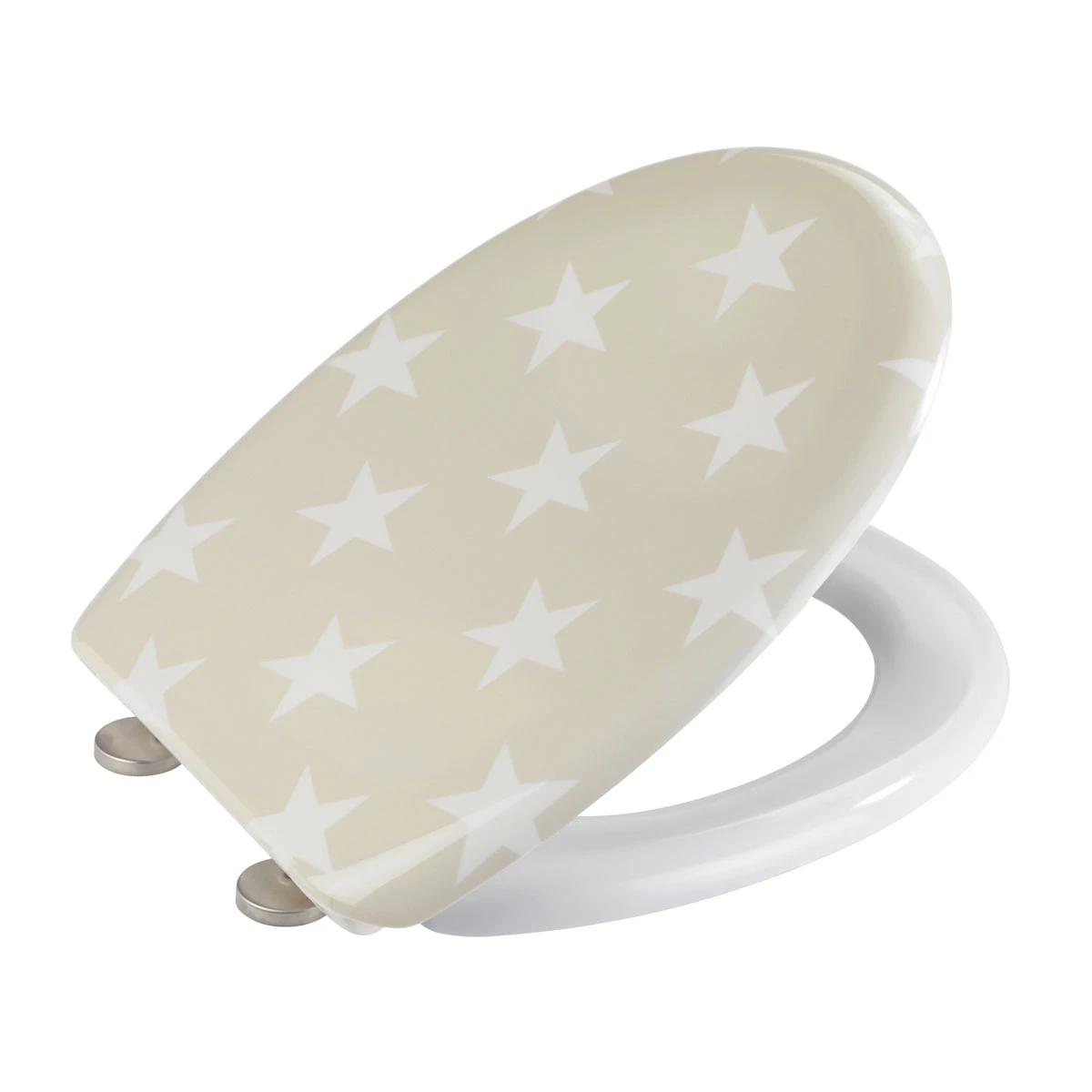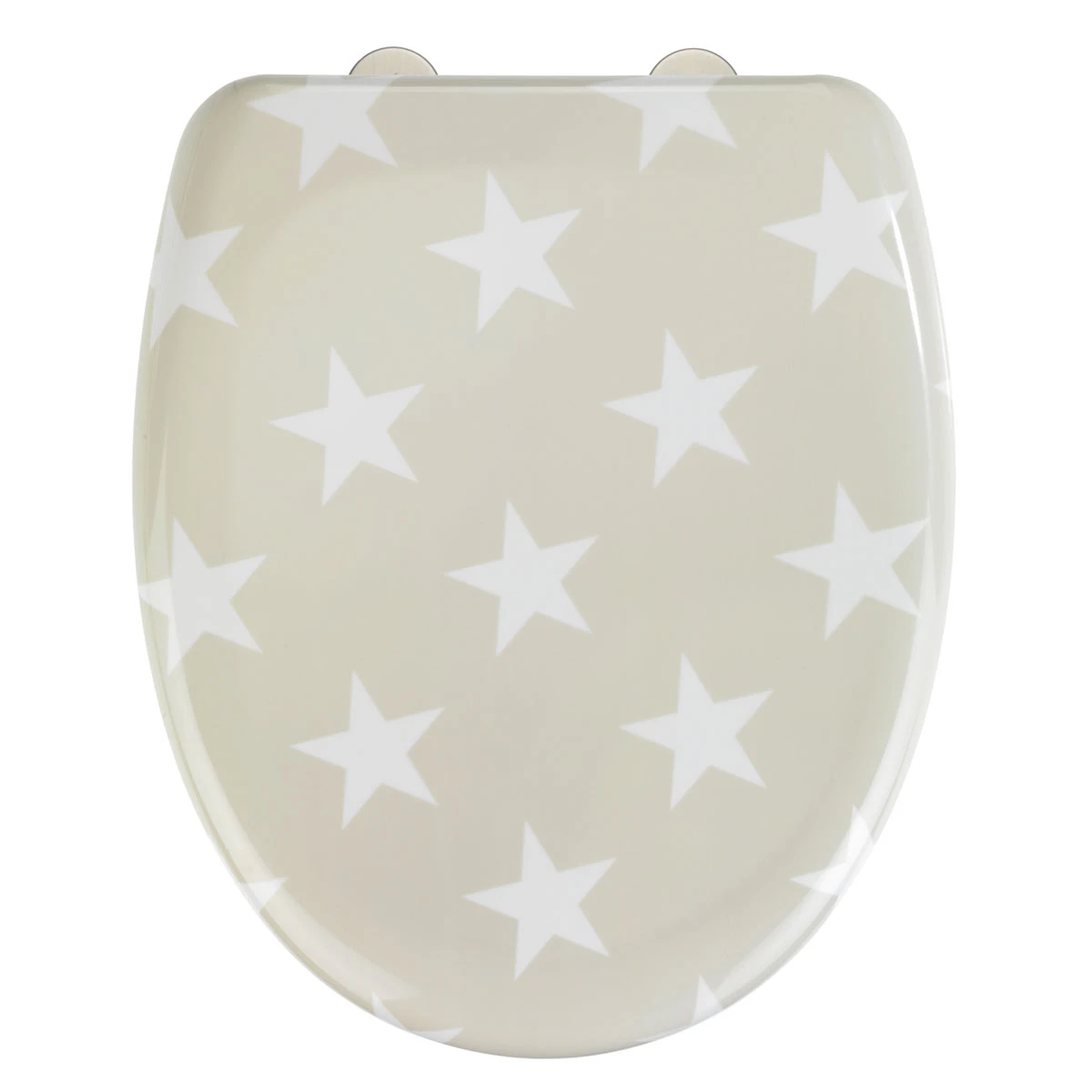 Aufwendig verarbeiteter Toiletten-Sitz in Taupe mit ovaler Deckelform aus hochwertigem Duroplast mit angesagtem Sternen-Motiv
