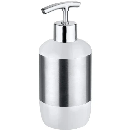 Für ein stilvolles Badambiente eignet sich der Seifenspender Loft mit seiner eindrucksvollen Form. Das innovative Design des Seifenspenders Loft kombiniert hochwertig, satiniertes Edelstahl mit weißem Kunststoff. Der Seifenspender Loft besticht nicht nur durch sein modernes Äußeres sondern ist zudem auch noch besonders stabil, rostfrei und durch seine abgerundete, glatte Oberfläche besonders leicht zu reinigen und demnach sehr hygienisch.