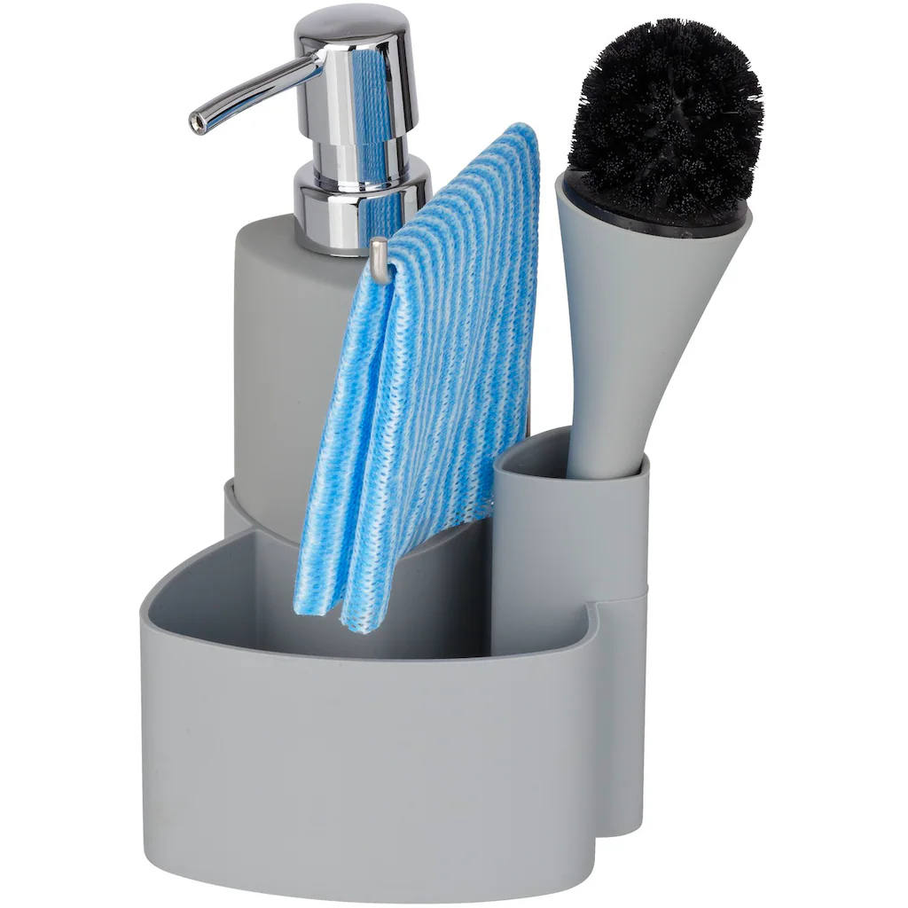 Bunte Vielfalt kommt mit dem Spül-Set »Empire«, in jede Küche. Bestehend aus einem Spender für Flüssigseife oder Spülmittel und einer Spülbürste in moderner Form, bietet das Set auch eine Aufbewahrungsmöglichkeit für einen Schwamm. Ein praktischer Spültuchhalter macht das Trocknen von Spültüchern und Schwämmen zu einer einfachen Angelegenheit. Mit dem praktischen Spül-Set sind alle Utensilien immer griffbereit.