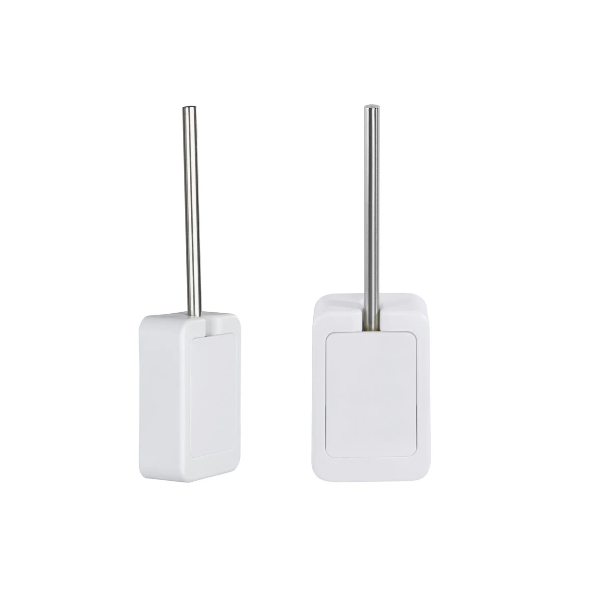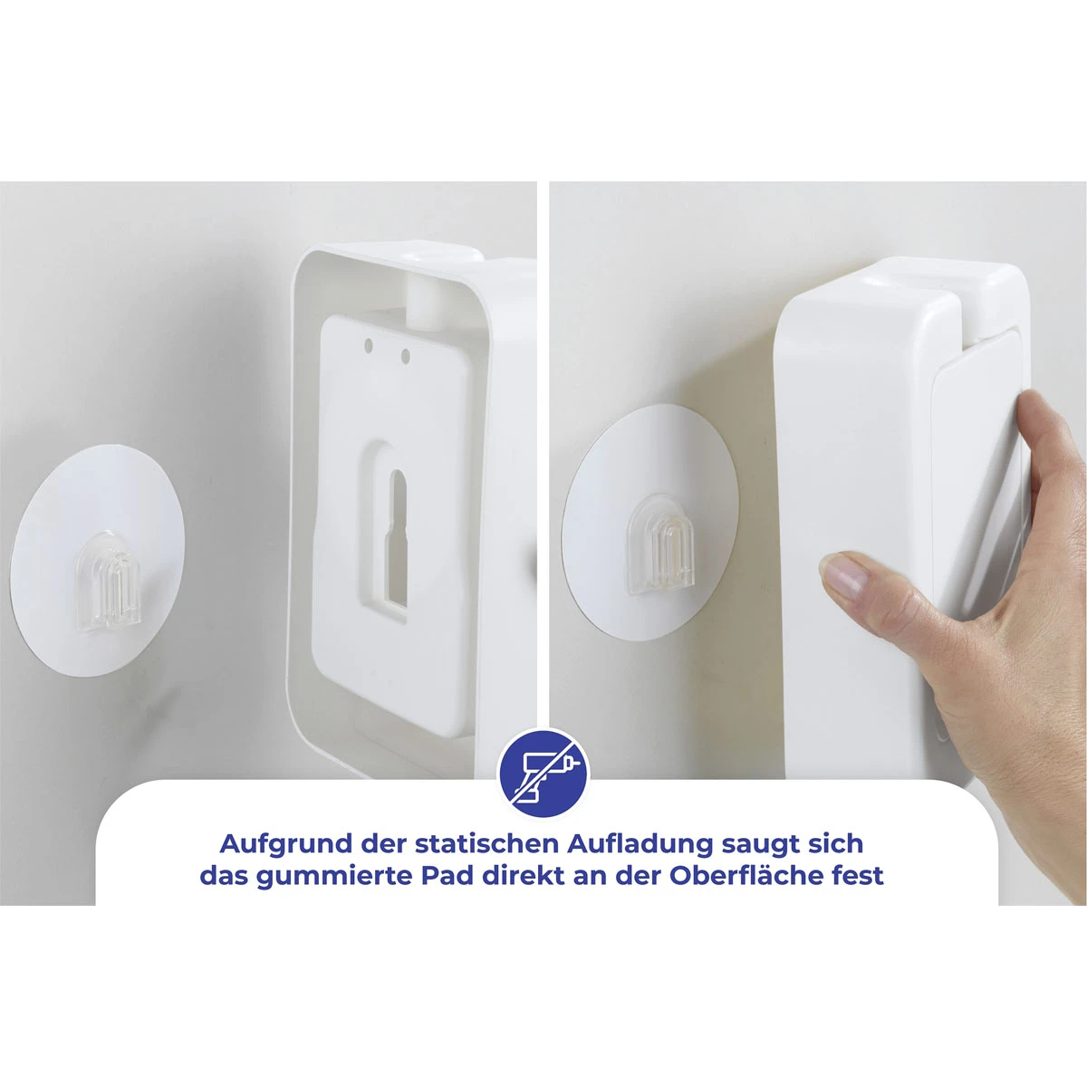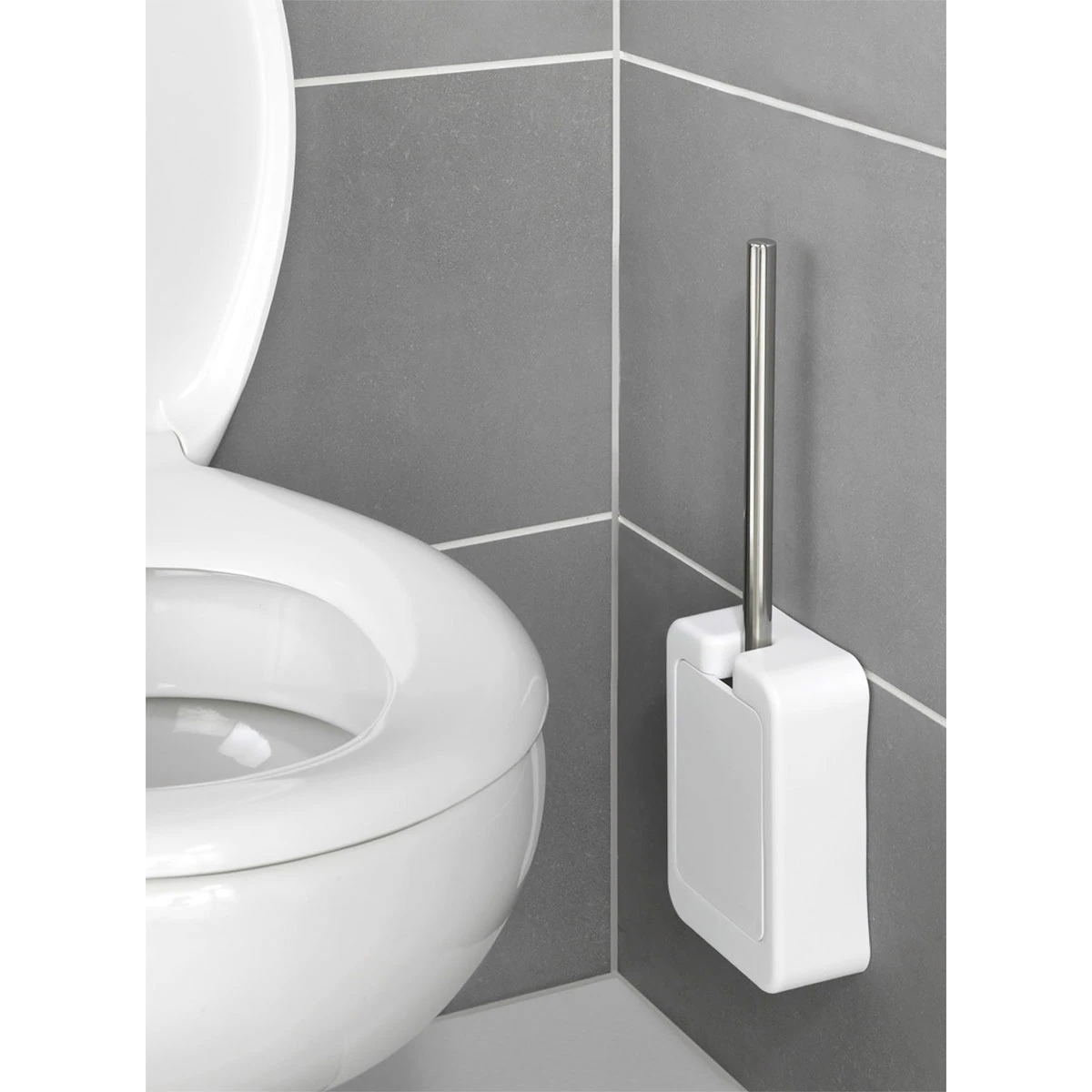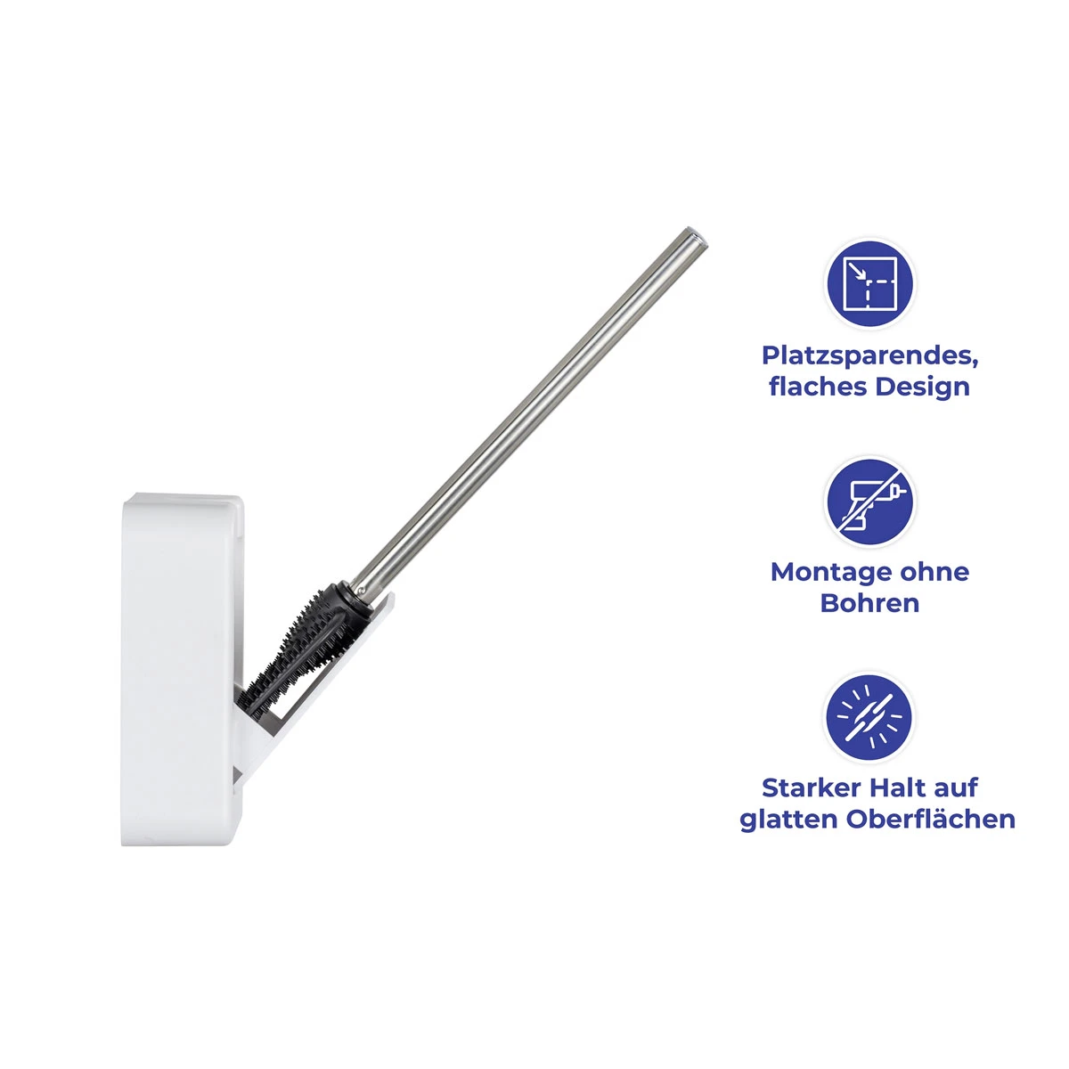 Die Static-Loc® WC-Garnitur Osimo in Weiß besticht nicht nur durch hochwertige Qualität, sondern ebenso durch die innovative Formgebung der WC-Bürste: Der clevere Kopf der WC-Bürste ermöglicht höchste hygienische Reinigung der WC-Keramik auch an schwer zugänglichen Stellen. Besonders hilfreich ist die Garnitur für randlose Toiletten. Auch schwer erreichbare Ecken müssen nicht länger verdreckt bleiben oder kompliziert gereinigt werden. Der hochwertige Bürstenkopf ist aus Silikon gefertigt und mit speziellen Noppen versehen. Seine Anti-Haft-Wirkung sorgt dafür, dass sich hartnäckige Reste und Toilettenpapier nicht in der Bürste festsetzen, sondern beim Reinigen einfach weggespült werden. So bleibt die clevere Bürste immer hygienisch sauber und reinigt sich selber.Die WC-Garnitur ist aus hochwertigem, bruchsicherem Kunststoff gefertigt und im dezenten Weiß gehalten. Mit dem attraktiven Toilettenbürstenhalter kommt starker Halt auf allen glatten luftundurchlässigen Oberflächen (wie z.B. Fliesen, Glas, folierte Holzplatten) in das Badezimmer und Gäste-WC.Wie es funktioniert? Einfach die Schutzfolie abziehen und den Loc fest andrücken. Durch die statische Aufladung saugt sich das gummierte Pad direkt an.Das Gute: Die Garnitur kann sofort belastet werden und ist jederzeit repositionierbar.Kombinieren Sie diesen WC-Bürstenhalter mit den vielen weiteren, cleveren Bad-Accessoires der Osimo-Serie, alle zum Befestigen ohne bohren.
