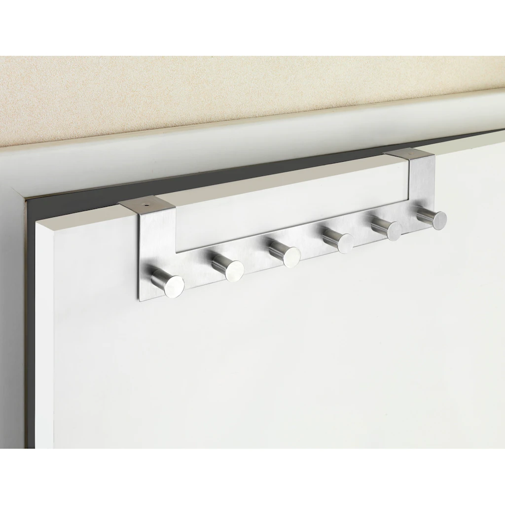 Dezentes Design macht diese Türgarderobe von Wenko so beliebt. Einfach über die Tür gehängt, sorgt sie für eine platzsparende Aufhängemöglichkeit von Jacken oder Handtüchern. Dank rostfreiem Material kann sie auch im Bad verwendet werden. Die Garderobe wird einfach an üblichen Türfälzen bis ca. 4 cm eingehängt. Die Tür lässt sich danach trotzdem problemlos schließen.