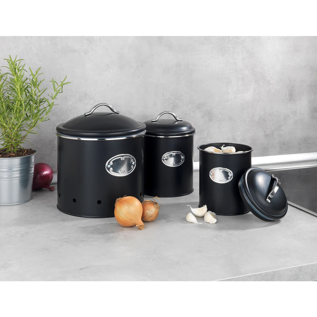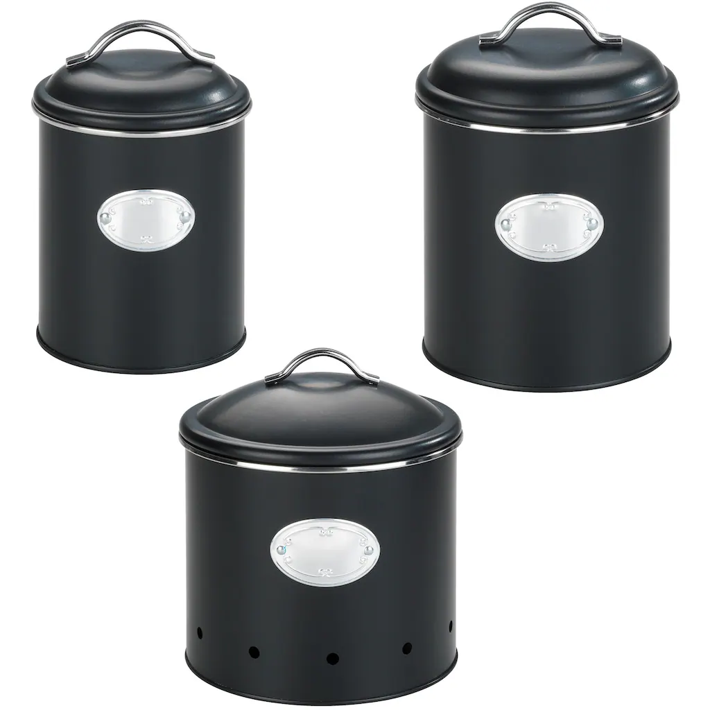 - Lieferumfang: WENKO Aufbewahrungsdose Nero Set, 3-teilig, Dosen mit Deckel aus lackiertem Metall, Schwarz