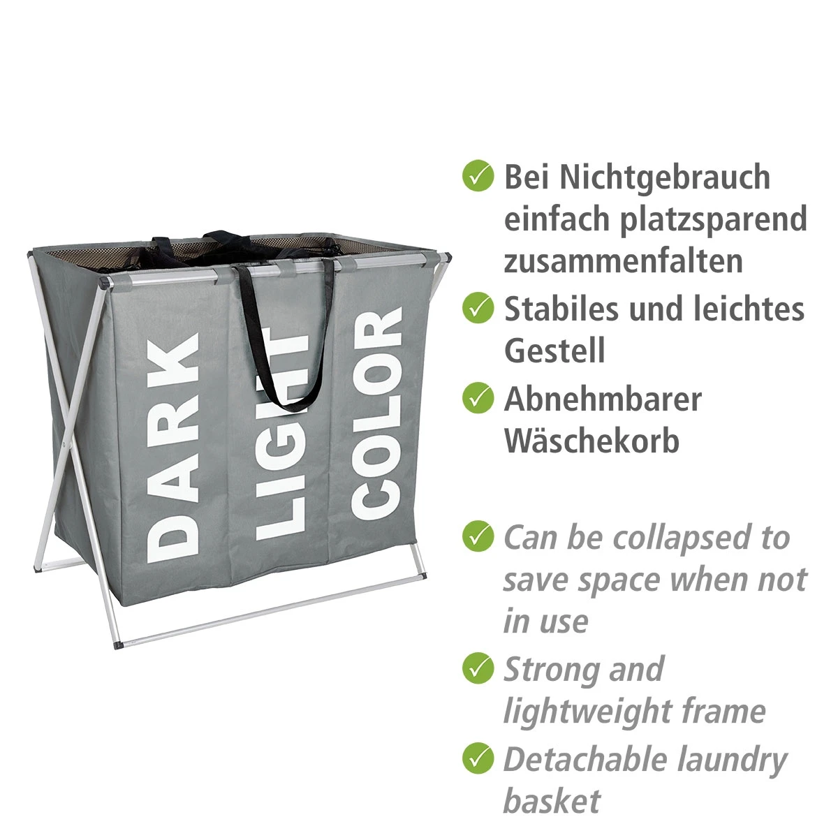 Wenko Wäschesammler „Trio“, Grau, 130 L