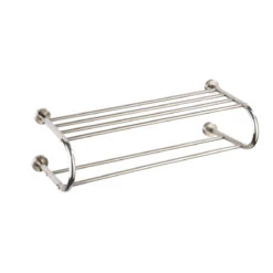 Zwei in einem – dekorativ und praktisch bietet das hochwertige Wandregal Fastro aus rostfreiem, glänzendem Edelstahl viel Platz zum Ablegen und Aufbewahren.Auf der oberen Ablage bietet das Regal vielfältige Abstellmöglichkeiten für Kosmetikartikel, Bad-Accessoires und Handtücher.Die unteren beiden Handtuchstangen schaffen zusätzliche Fläche zum Aufhängen von Hand-, Bade- und Duschtüchern.Das Regal besticht durch sein abgerundetes Design und seine Stabilität. Die Anbringung ist kinderleicht. Das Regal wird einfach an der Wand montiert.Alternativ kann das Wandregal auch problemlos mit dem Power-Loc® Klebesystem (nicht im Lieferumfang enthalten) befestigt werden.