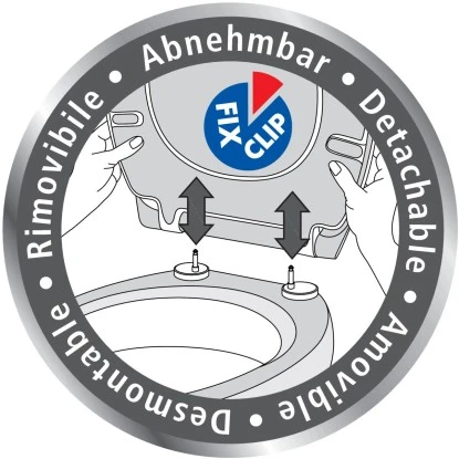 Die Fix-Clip-Befestigung ermöglicht eine leichte und sichere Anbringung des WC-Sitzes. Hierzu wird die Befestigung einfach auf der Keramik montiert. Nach Überprüfung der richtigen Endposition des Toilettensitzes, können die Schrauben fest gezogen und die Edelstahl-Blenden angebracht werden. Der WC-Sitz Exclusive kann jetzt in die zuvor angebrachte Halterung gesteckt und bei Bedarf wieder abgenommen werden. Dieser Vorteil ermöglicht eine schnelle und vor allem gründliche Reinigung.