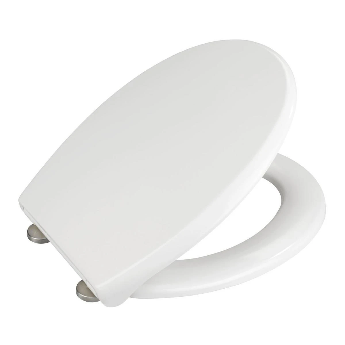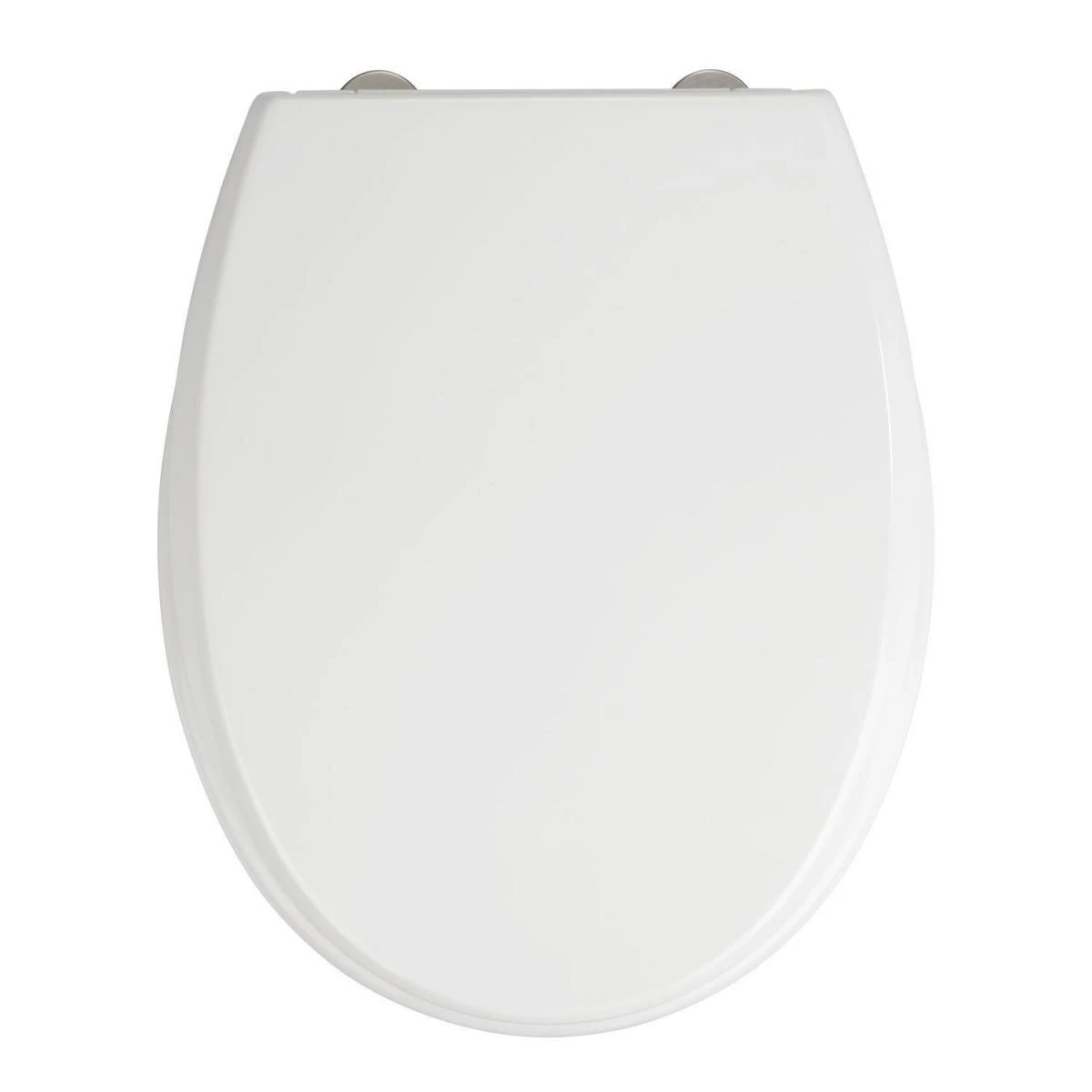 Klassischer WC-Sitz mit ovaler Deckelform aus antibakteriellem, hochwertigem Duroplast in dezentem Weiß