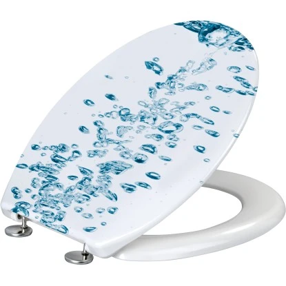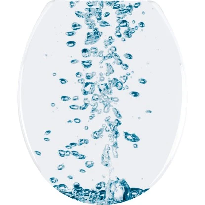 ÖSpritzige Atmosphäre verleiht der WC-Sitz Soda dem Badezimmer oder Gäste-WC. Das schöne Wassertropfen-Motiv ist ein pflegeleichter Dauergast auf der Deckelaußenseite. Der aus hochwertigem Duroplast hergestellte WC-Sitz verfügt über einen angenehmen Sitzkomfort und Stabilität.