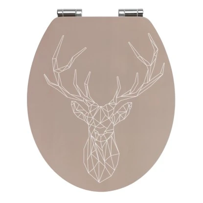 Der WC-Sitz Stag aus MDF/ Bambus hat eine klassische ovale Deckelform. Das attraktive Design mit angesagtem Hirsch-Motiv im Triangle-Look setzt starke Akzente in jedem Badezimmer und Gäste-WC. Neben dem angenehmen Sitzkomfort ist der Toilettensitz auch mit praktischen Zusatzfunktionen ausgestattet. So gehört lautes Deckelknallen mit der externen Easy-Close-Absenkautomatik der Vergangenheit an. Der Toilettendeckel schließt sanft und leise. Durch das langsame Absenken wird auch ein Einklemmen von Fingern und Kleidung verhindert. Für Halt sorgt die massive, rostfreie Zinkdruckgussbefestigung, die flexibel einstellbar passend für handelsübliche WCs ist. Ein praktischer Wandpuffer ist im Lieferumfang enthalten. Der originelle Sitz ist aus formgepressten, mitteldichten Holzfasern (MDF) hergestellt. Durch seine Mehrfachlackierung hat er eine hygienische, leicht zu reinigende sowie feuchtigkeitsresistente Oberfläche. Der WC-Ring ist aus echtem Bambus hergestellt. Die natürliche Maserung und Farbe verleiht jedem Sitz seinen individuellen Charme und bietet auch unter ökologischen Aspekten klare Vorteile. Bambus ist ein schnell nachwachsender Rohstoff.