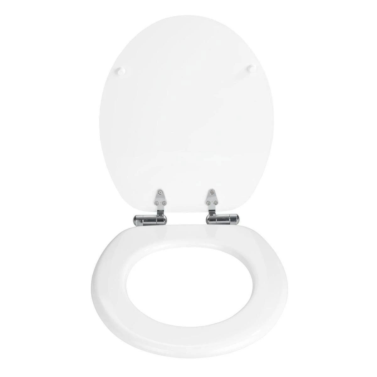Klassischer, weißer WC-Sitz aus formgepressten, mitteldichten Holzfasern (MDF)