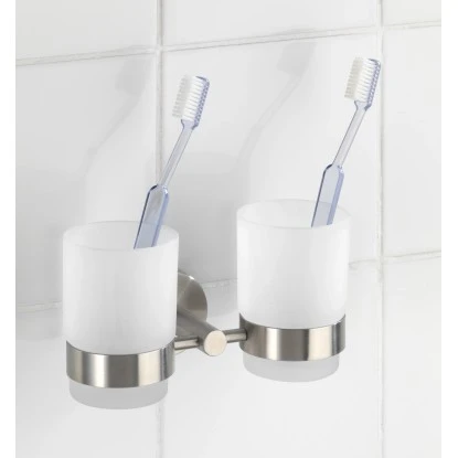 Das praktische Zahnputzbecher-Duo ist abnehmbar und ist aus satiniertem Glas hergestellt. Es bietet Platz für Zahnbürsten und Zahnpasta und hält diese stets an gewünschter Stelle griffbereit.